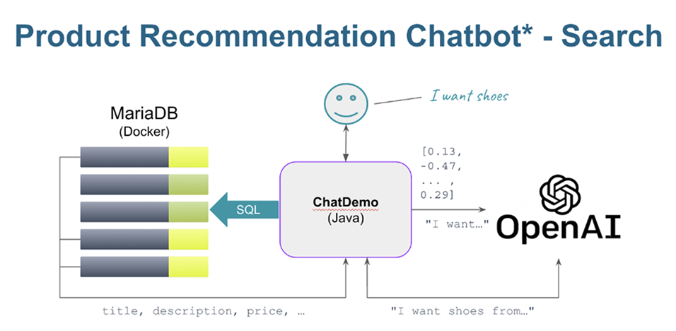 Unlock the power of MariaDB Enterprise Platform and its vector capabilities using a full vector search demo. In this demo you chat with the OpenAI API (the programmatic model behind ChatGPT) and connect its output to products in a local MariaDB instance. To check it out, clone: